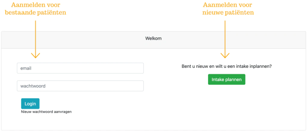 If you want to make an appointment with us, first click on ‘request new password’. Then enter the email address you have registered with us and create a password. You will receive a confirmation email, after which you will be able to log into the system to schedule an appointment.